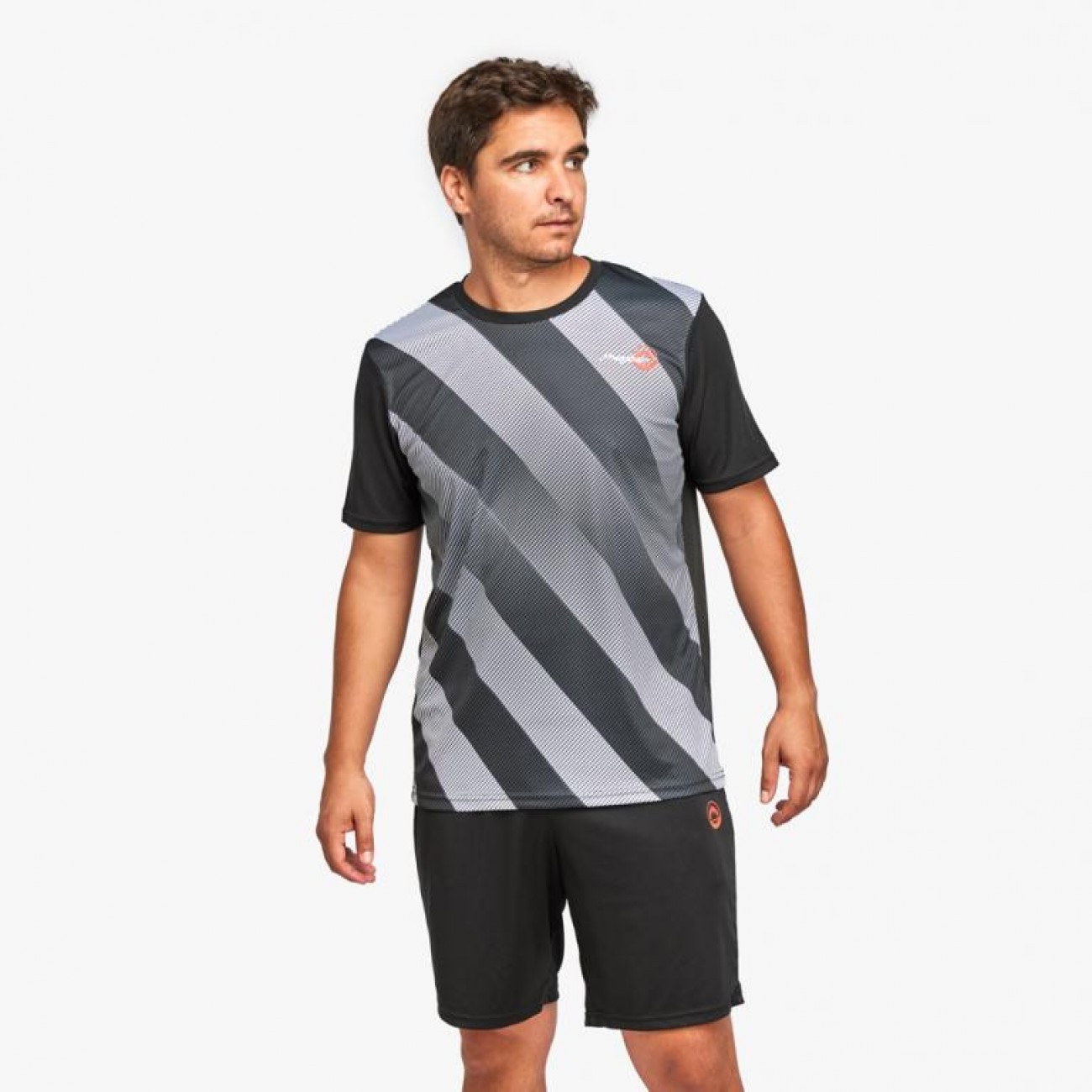 Set sportivo da uomo, modello GLOW, composto da t-shirt e pantaloncini.