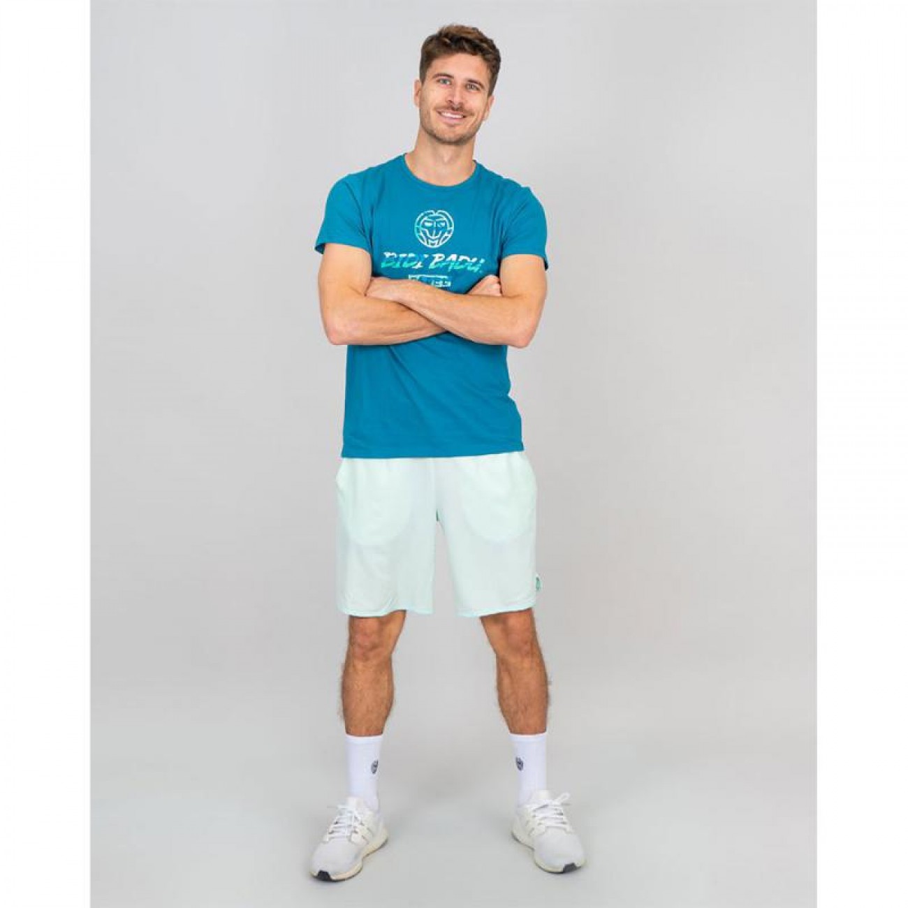 Il girocollo alto gli conferisce un look classico, mentre un ampio e sorprendente logo BIDI BADU Padel in contrasto sul petto cattura l''attenzione.