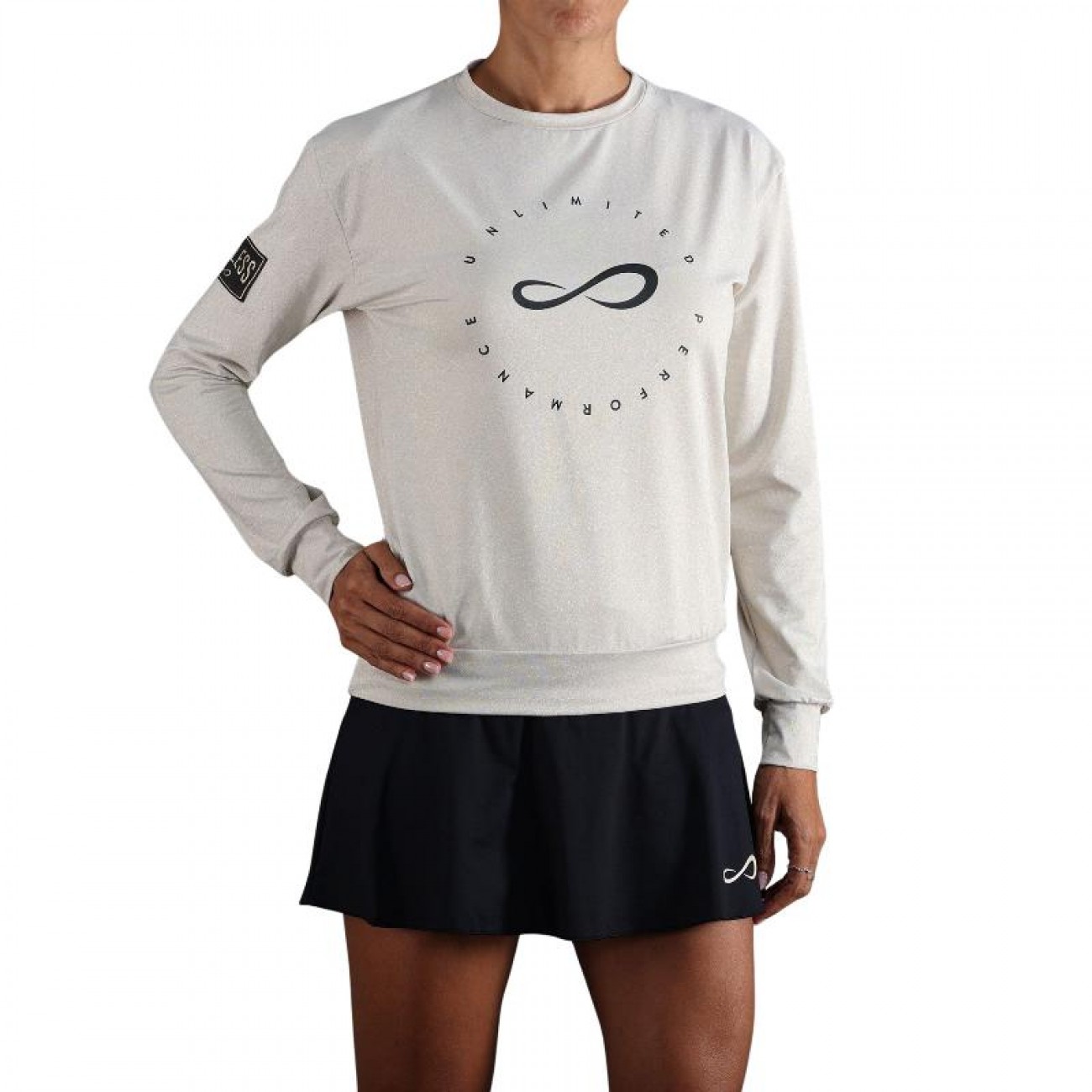 Realizzata in un tessuto bielasticizzato e con una vestibilità ampia, questa felpa è perfetta per le donne attive che cercano comfort e stile sia dentro che fuori dal campo.