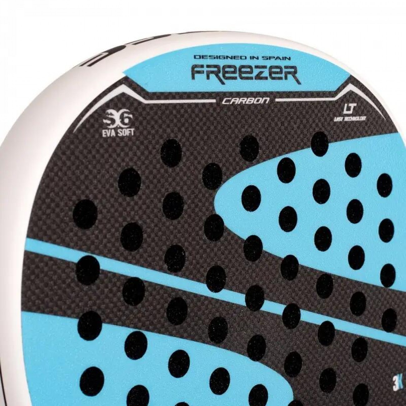 1. Materiale della superficie: il Softee Freezer Carbon 2025 ha una superficie in carbonio 3K, che offre grande rigidita e resistenza, ideale per ottenere un colpo piu potente e preciso.