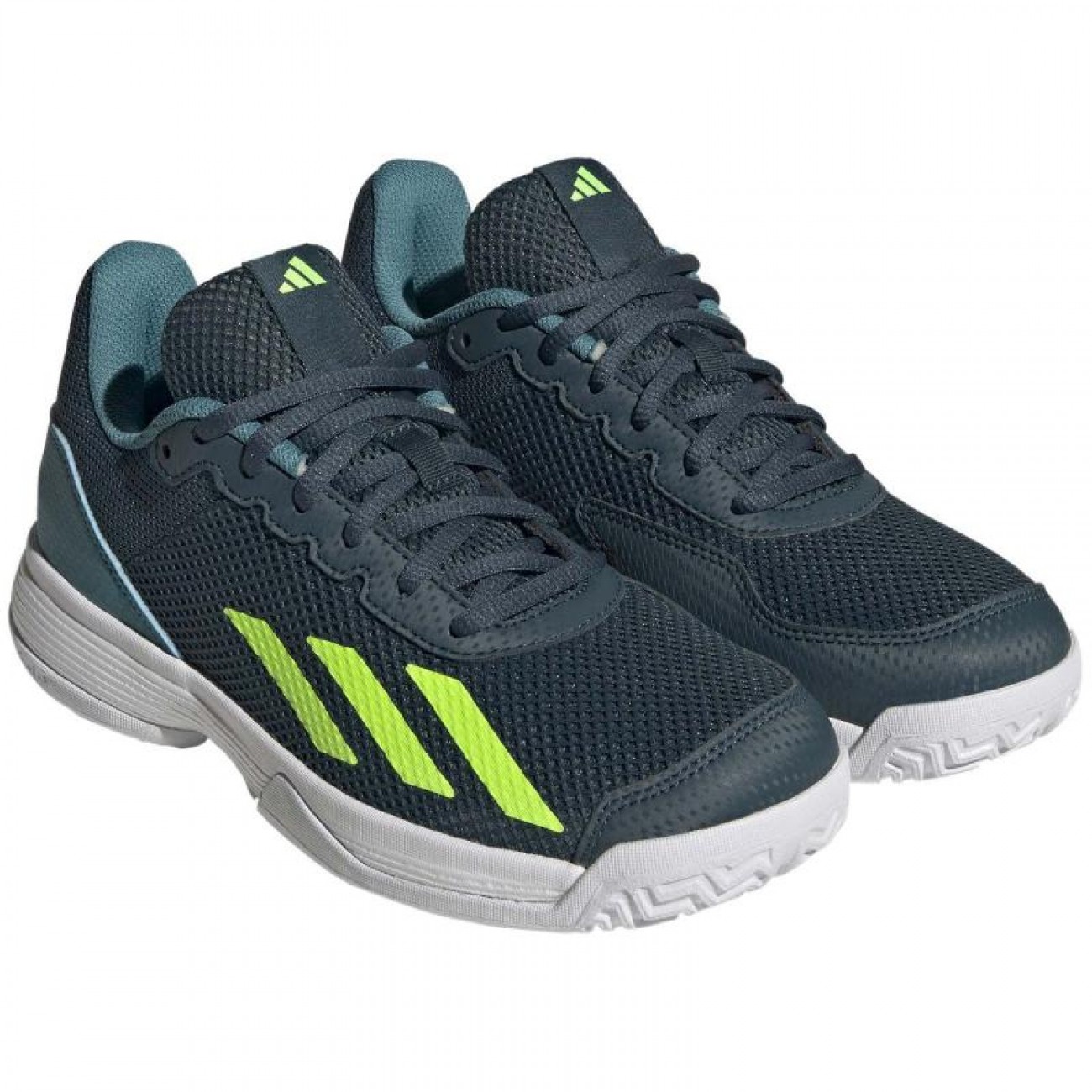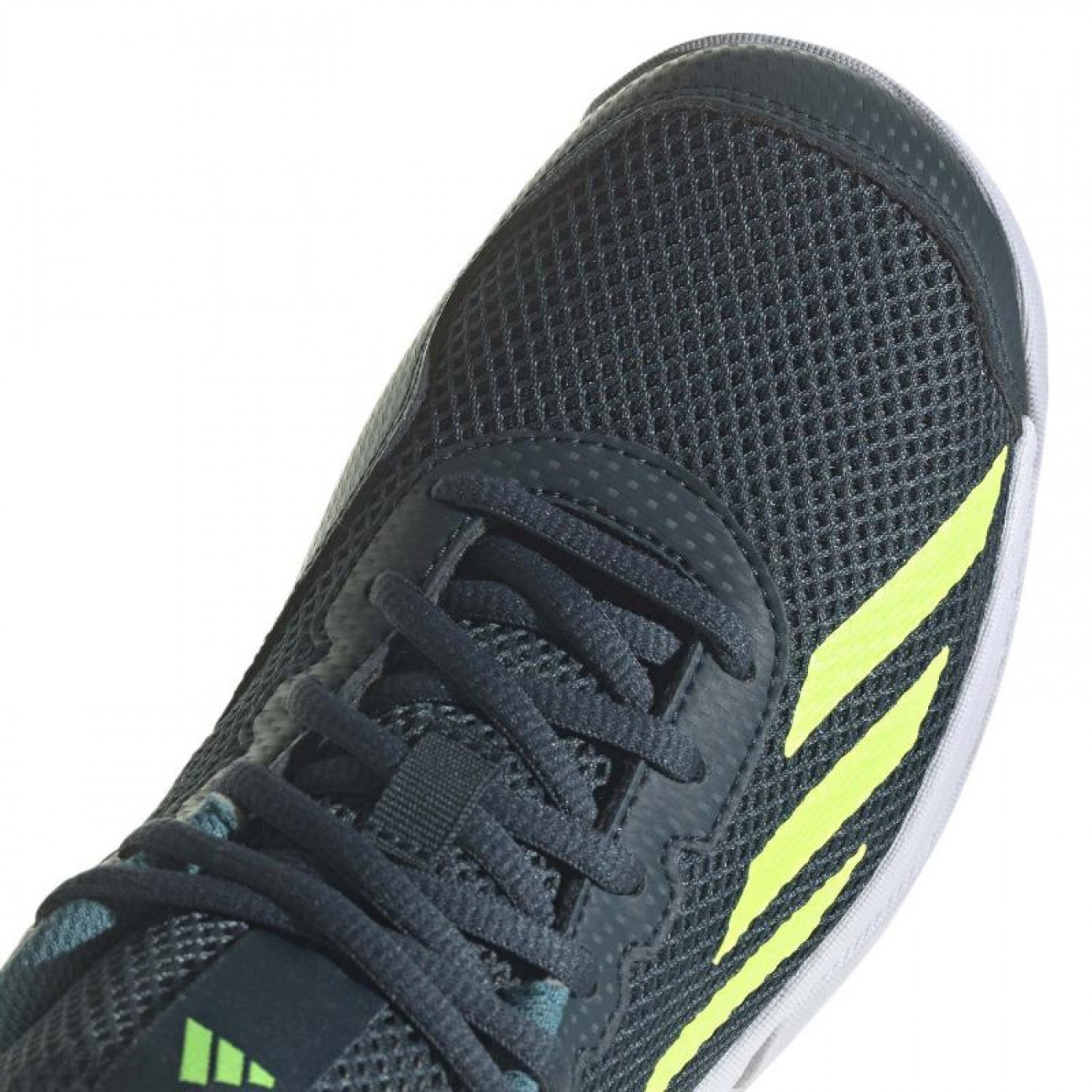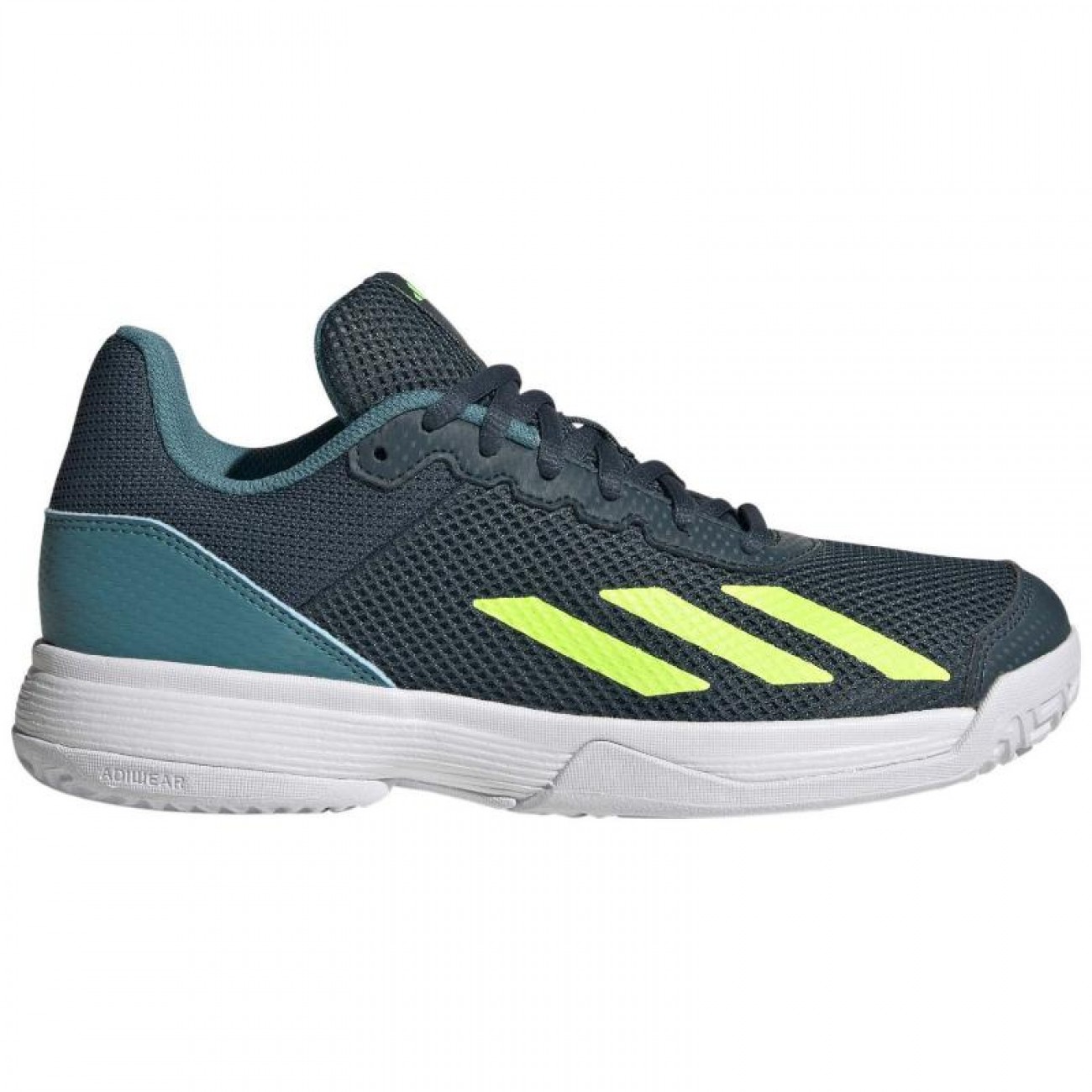 E tempo per lui di distinguersi in pista. Questa scarpa Courtflash di adidas presenta una tomaia in mesh leggera e traspirante che si adatta ai piedi veloci dei piu piccoli.