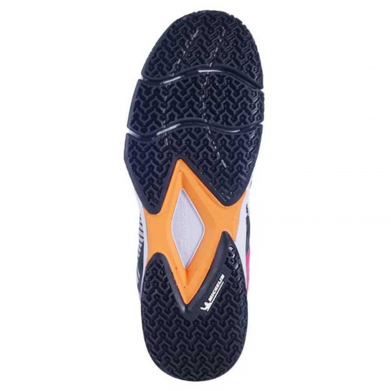 Abbiamo unito il know-how di Babolat con la conoscenza e l''esperienza di Michelin per sviluppare la prima suola specifica per la pratica del padel: grande flessibilita, grazie a due scanalature presenti nell''avampiede della scarpa, e un dinamismo ottimale fornito da un nuovo design delle tacchette perfettamente adattato alla sabbia e all''erba artificiale.